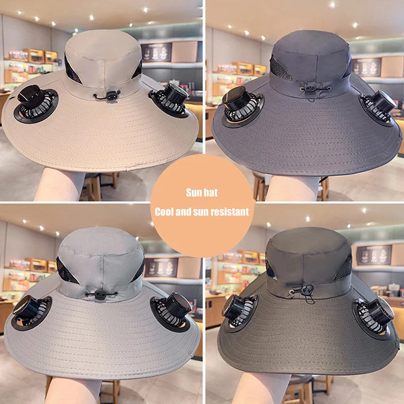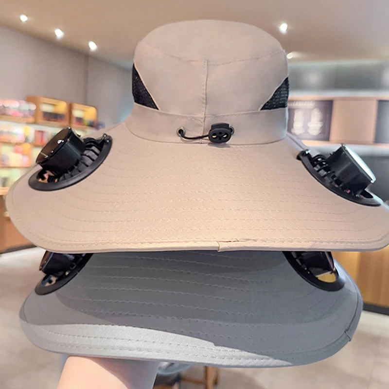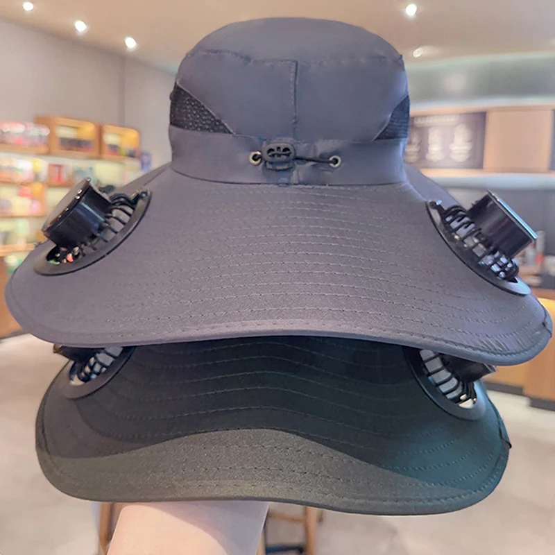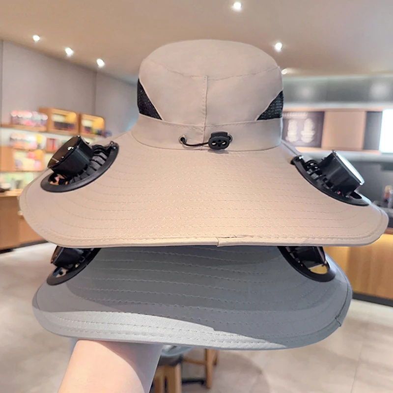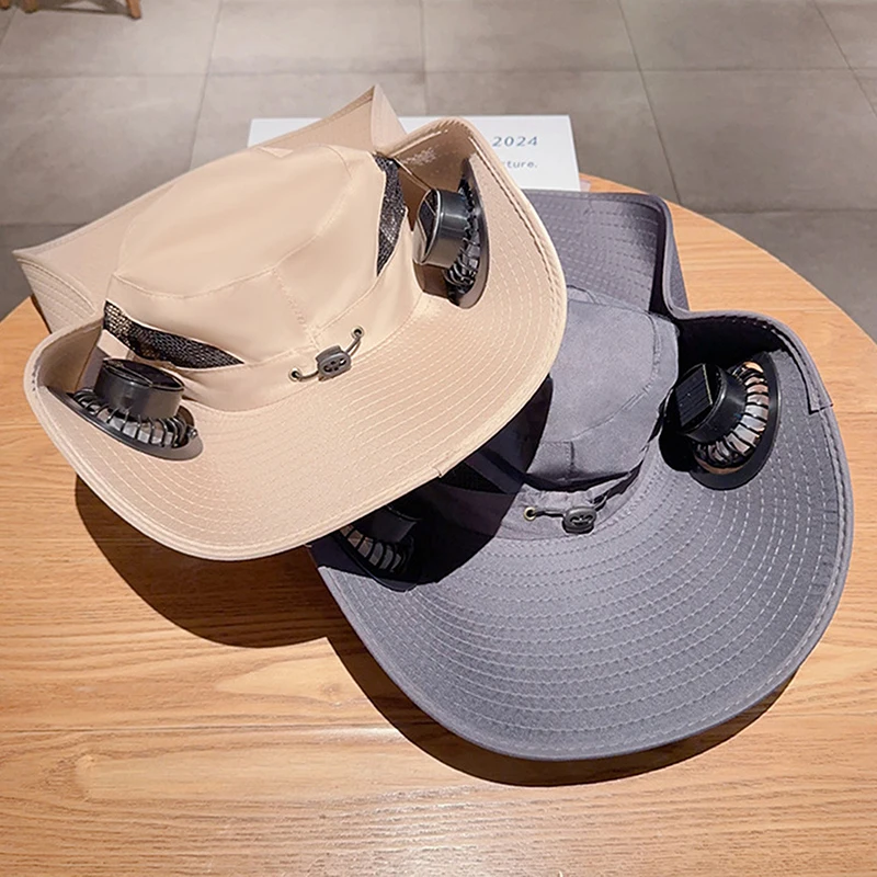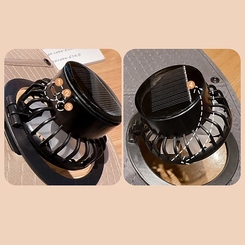 Solar Fan Outdoor Hat: This upgraded fan hat is designed to be worn on the head, freeing your hands. There are 2 mini fans built into the front of the brim to cool your face. You can hang the fan on your head and carry it around without getting tired or uncomfortable.