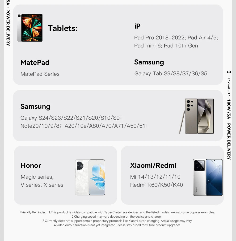 ②Not support certain proprietary protocols, such as Xiaomi Turbo, Dart Protocol, Supervooc. Actual usage may be different.